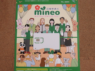 そして、その足でmineoに申し込むと2日でSIMカードが到着しました。