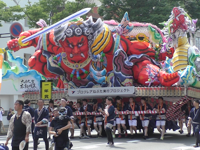 五所川原市では立佞武多(たちねぷた)が夜間に運行されるので観覧します。